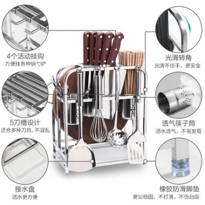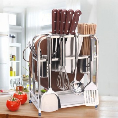 四季沐歌不锈钢刀架厨房多功能置物架菜刀砧板架收纳架子厨房用品
